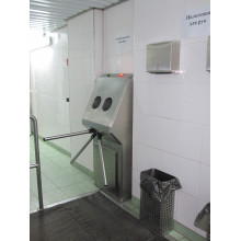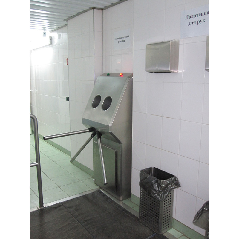 Дезинфекция кистей рук и подошв обуви. Все элементы системы смонтированы на нержавеющей раме.