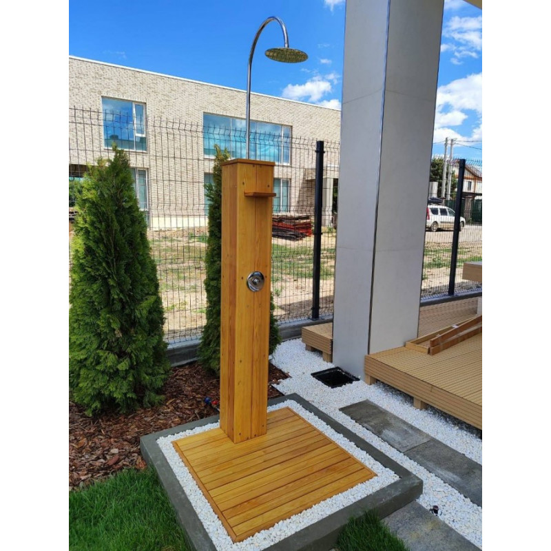 Выполненный из дерева душ Helix прекрасно подходит для использования на открытом воздухе.