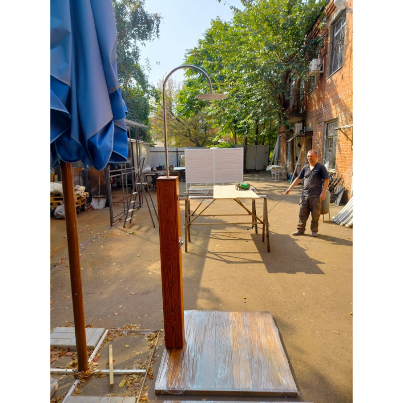 Деревянный уличный душ из массива.