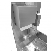 В комплектацию входят: дозатор для жидкого мыла или антисептичеких и дезинфицирующих средств, диспенсер для бумажных полотенец и два сменных резервуара объемом 20 литров.