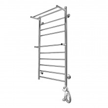 Электрический полотенцесушитель из пищевой нержавеющей стали. Цвет «хром» – полированная до зеркального блеска нержавеющая сталь. Труба электросварная. Толщина 2 мм. Вертикальные стойки имеют диаметр 32мм., горизонтальные перекладины выполнены из трубы диаметром 18мм. ТЭН имеет цифровой терморегулятор, температура регулируется от 35 до 70 градусов. Встроен таймер автоотключения на 2 и 4 часа. ТЭН оснащён двумя термодатчиками, которые защищают устройство от перегрева. Возможно скрытое подключение. Поставляется в сборном виде.