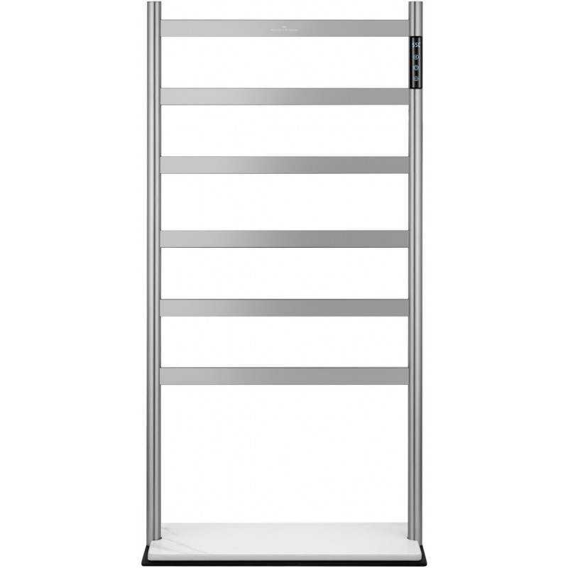 В основе модели — нагревательный кабель из углеродного волокна, гарантирующий безопасность, равномерный нагрев и долговечность. При мощности 90 Вт нагрев происходит всего за 5 минут, достигая комфортных 60°C. Функция отложенного старта и таймер позволяют экономить электроэнергию, устанавливая удобное время включения и выключения. Регулировка температуры от 45°C до 60°C с шагом 5°C обеспечивает точный контроль нагрева. Конструкция из 6 греющих перекладин позволяет сушить большое количество белья, одновременно формируя благоприятный микроклимат и атмосферу комфорта. Каменное основание обеспечивает устойчивость и добавляет интерьеру природной эстетики.