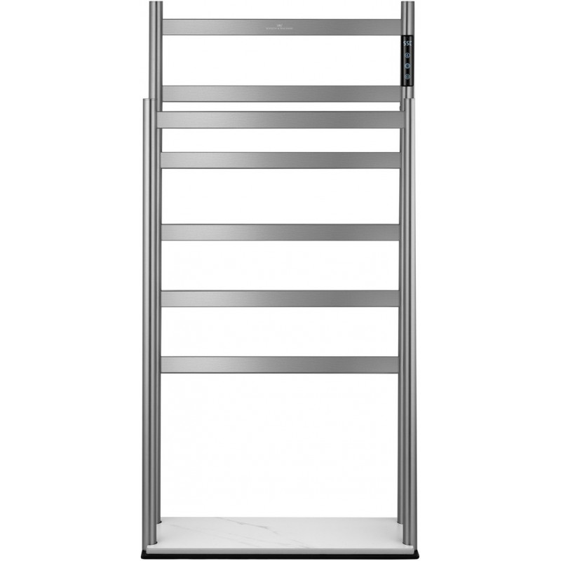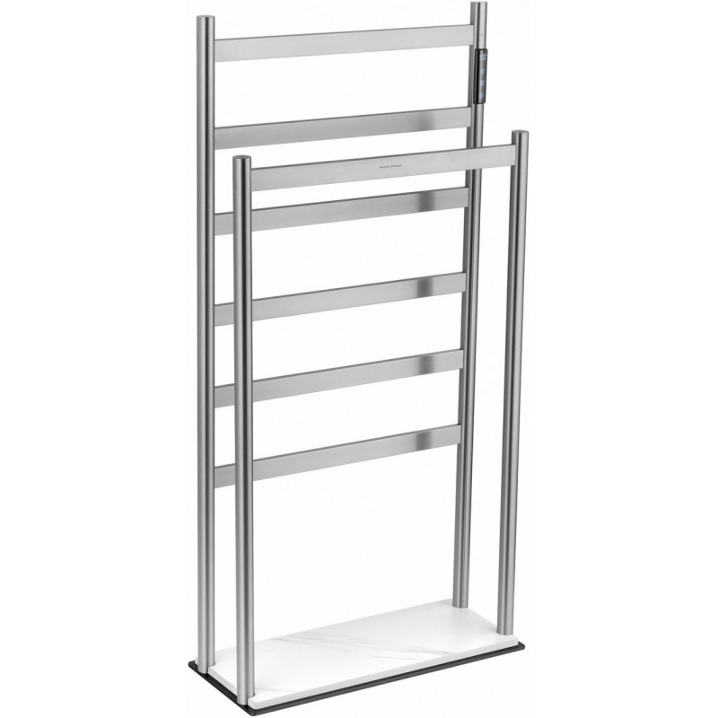 В основе модели — нагревательный кабель из углеродного волокна, гарантирующий безопасность, равномерный нагрев и долговечность. При мощности 90 Вт нагрев происходит всего за 5 минут, достигая комфортных 60°C. Функция отложенного старта и таймер позволяют экономить электроэнергию, устанавливая удобное время включения и выключения. Регулировка температуры от 45°C до 60°C с шагом 5°C обеспечивает точный контроль нагрева. Конструкция из 6 греющих перекладин позволяет сушить большое количество белья, одновременно формируя благоприятный микроклимат и атмосферу комфорта. Дополнительная перекладина предназначена для удобного размещения халатов и домашней одежды. Каменное основание обеспечивает устойчивость и добавляет интерьеру природной эстетики.