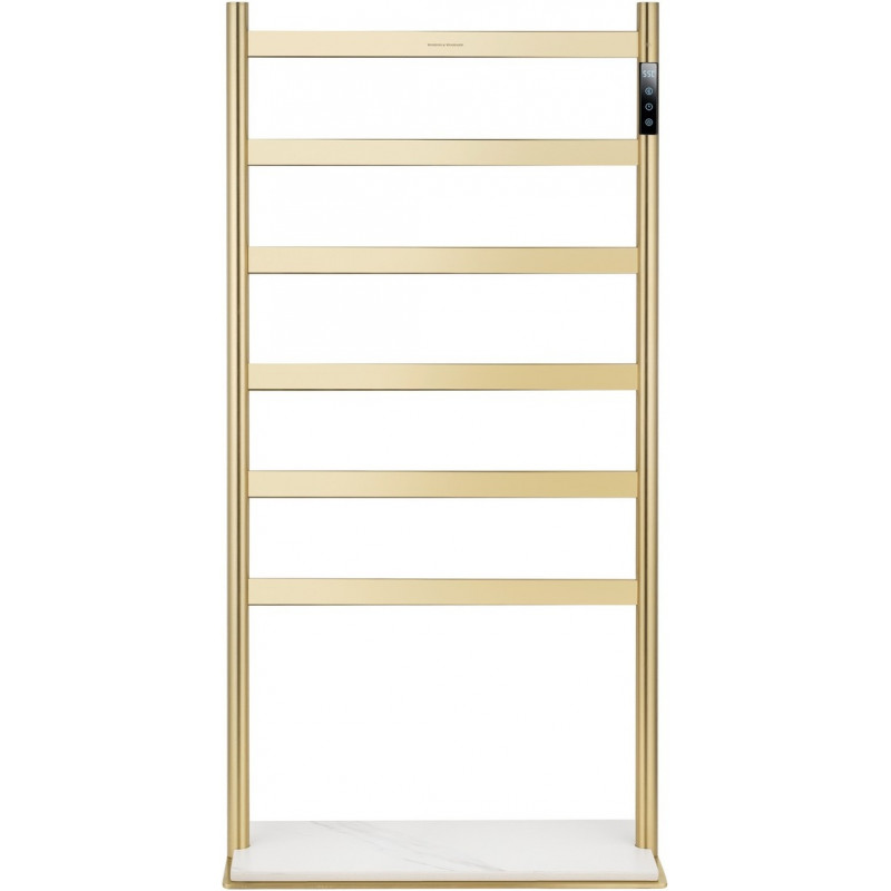 В основе модели — нагревательный кабель из углеродного волокна, гарантирующий безопасность, равномерный нагрев и долговечность. При мощности 90 Вт нагрев происходит всего за 5 минут, достигая комфортных 60°C. Функция отложенного старта и таймер позволяют экономить электроэнергию, устанавливая удобное время включения и выключения. Регулировка температуры от 45°C до 60°C с шагом 5°C обеспечивает точный контроль нагрева. Конструкция из 6 греющих перекладин позволяет сушить большое количество белья, одновременно формируя благоприятный микроклимат и атмосферу комфорта. Каменное основание обеспечивает устойчивость и добавляет интерьеру природной эстетики.