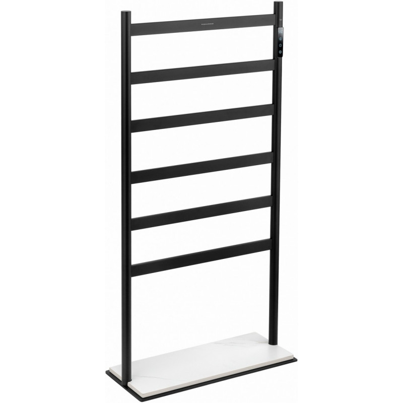 В основе модели — нагревательный кабель из углеродного волокна, гарантирующий безопасность, равномерный нагрев и долговечность. При мощности 90 Вт нагрев происходит всего за 5 минут, достигая комфортных 60°C. Функция отложенного старта и таймер позволяют экономить электроэнергию, устанавливая удобное время включения и выключения. Регулировка температуры от 45°C до 60°C с шагом 5°C обеспечивает точный контроль нагрева. Конструкция из 6 греющих перекладин позволяет сушить большое количество белья, одновременно формируя благоприятный микроклимат и атмосферу комфорта. Каменное основание обеспечивает устойчивость и добавляет интерьеру природной эстетики.
