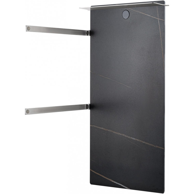 В основе модели — нагревательный кабель из углеродного волокна, гарантирующий безопасность, равномерный нагрев и долговечность. При мощности 125 Вт нагрев происходит всего за 5 минут, достигая комфортных 60°C. Функция отложенного старта и таймер позволяют экономить электроэнергию, устанавливая удобное время включения и выключения. Регулировка температуры от 45°C до 60°C с шагом 5°C обеспечивает точный контроль нагрева. Конструкция из 2 греющих перекладин позволяет сушить большое количество белья, одновременно формируя благоприятный микроклимат и атмосферу комфорта. Каменная плита аккумулирует тепло, поддерживая температуру дольше и добавляя интерьеру природной эстетики. Маленькая верхняя полка предназначена для удобного размещения аромадиффузора или небольших аксессуаров, добавляя функциональности и уюта.