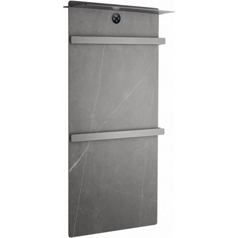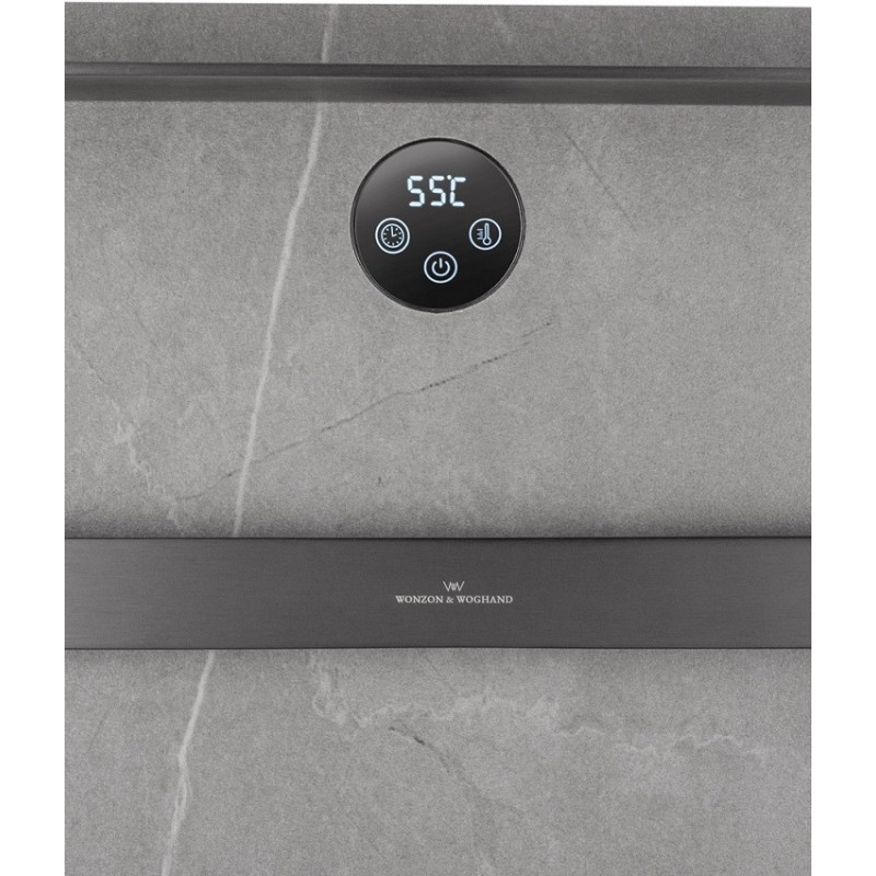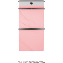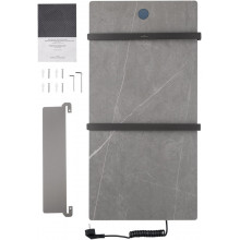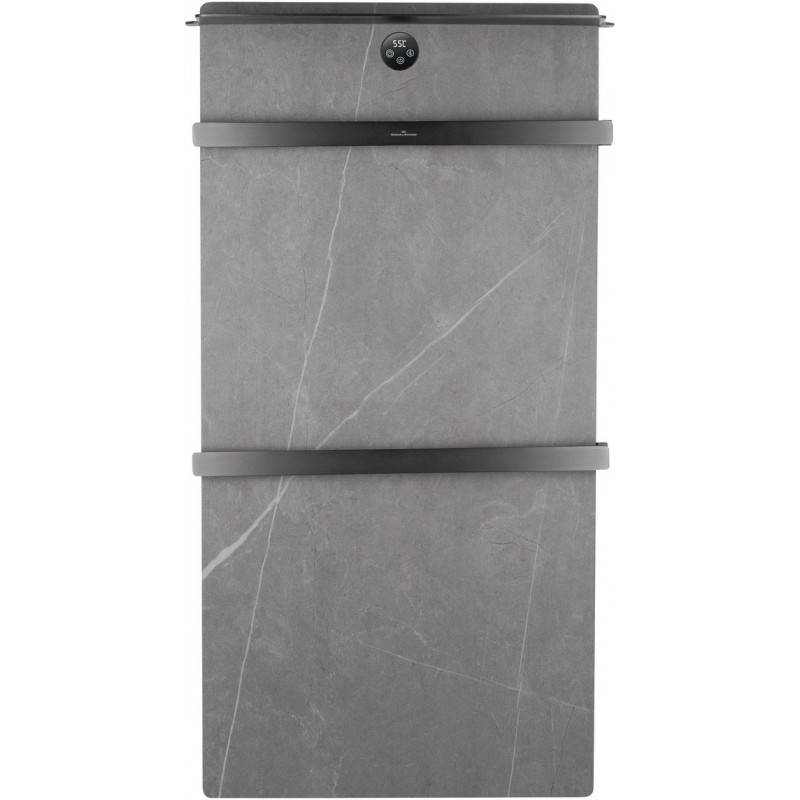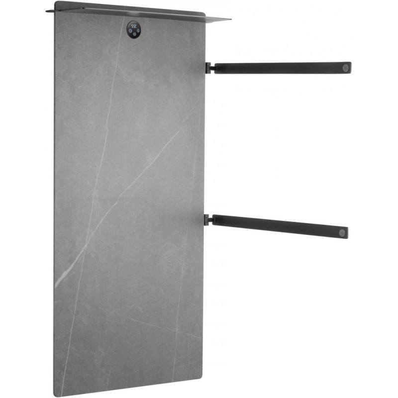 В основе модели — нагревательный кабель из углеродного волокна, гарантирующий безопасность, равномерный нагрев и долговечность. При мощности 125 Вт нагрев происходит всего за 5 минут, достигая комфортных 60°C. Функция отложенного старта и таймер позволяют экономить электроэнергию, устанавливая удобное время включения и выключения. Регулировка температуры от 45°C до 60°C с шагом 5°C обеспечивает точный контроль нагрева. Конструкция из 2 греющих перекладин позволяет сушить большое количество белья, одновременно формируя благоприятный микроклимат и атмосферу комфорта. Каменная плита аккумулирует тепло, поддерживая температуру дольше и добавляя интерьеру природной эстетики. Маленькая верхняя полка предназначена для удобного размещения аромадиффузора или небольших аксессуаров, добавляя функциональности и уюта.