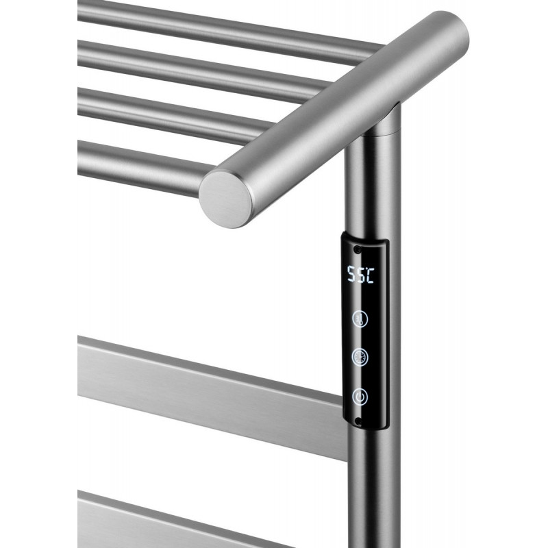 В основе модели — нагревательный кабель из углеродного волокна, гарантирующий безопасность, равномерный нагрев и долговечность. При мощности 80 Вт нагрев происходит всего за 5 минут, достигая комфортных 60°C. Функция отложенного старта и таймер позволяют экономить электроэнергию, устанавливая удобное время включения и выключения. Регулировка температуры от 45°C до 60°C с шагом 5°C обеспечивает точный контроль нагрева. Конструкция из 4 греющих перекладин позволяет сушить большое количество белья, одновременно формируя благоприятный микроклимат и атмосферу комфорта. Одна полка позволяет удобно хранить чистые полотенца, добавляя функциональности и уюта.