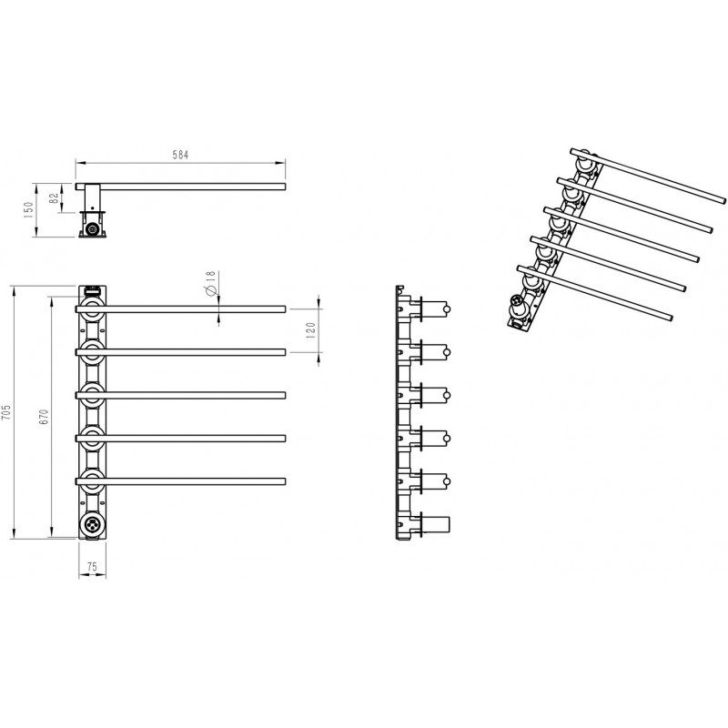 В основе модели — нагревательный кабель из углеродного волокна, гарантирующий безопасность, равномерный нагрев и долговечность. При мощности 75 Вт нагрев происходит всего за 5 минут, достигая комфортных 60°C. Функция отложенного старта и таймер позволяют экономить электроэнергию, устанавливая удобное время включения и выключения. Регулировка температуры от 45°C до 60°C с шагом 5°C обеспечивает точный контроль нагрева. Конструкция из 5 греющих перекладин позволяет сушить большое количество белья, одновременно формируя благоприятный микроклимат и атмосферу комфорта.