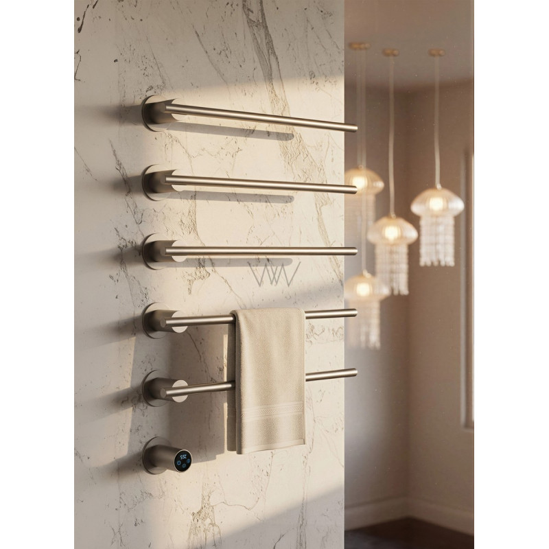 Ищете надежный полотенцесушитель для современной ванной комнаты? Электрический полотенцесушитель Wonzon & Woghand Dortmund WW-A365-BR станет отличным выбором, сочетая в себе стиль, функциональность и энергоэффективность. Данный полотенцесушитель выполнен из высококачественной латуни. Выразительные линии форм делают его идеальным выбором для интерьеров в стиле арт-деко, неоклассика, гламур или люкс.