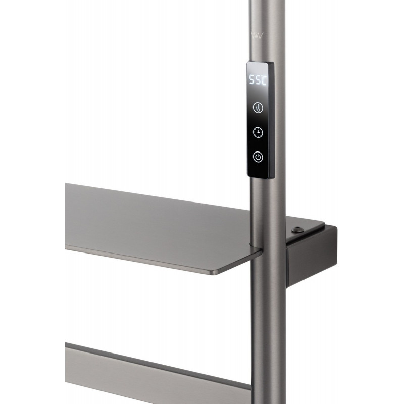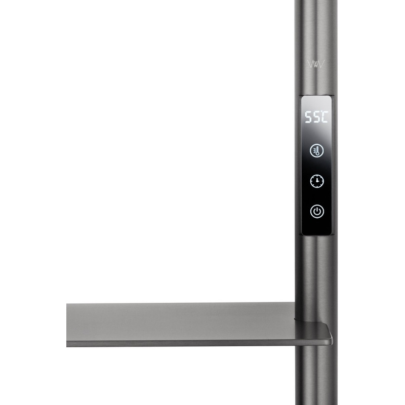 В основе модели — нагревательный кабель из углеродного волокна, гарантирующий безопасность, равномерный нагрев и долговечность. При мощности 70 Вт нагрев происходит всего за 5 минут, достигая комфортных 60°C. Функция отложенного старта и таймер позволяют экономить электроэнергию, устанавливая удобное время включения и выключения. Регулировка температуры от 45°C до 60°C с шагом 5°C обеспечивает точный контроль нагрева. Конструкция из 4 греющих перекладин позволяет сушить большое количество белья, одновременно формируя благоприятный микроклимат и атмосферу комфорта. Дополнительная полка предназначена для удобного размещения аромадиффузора или мелких аксессуаров, добавляя функциональности и уюта.