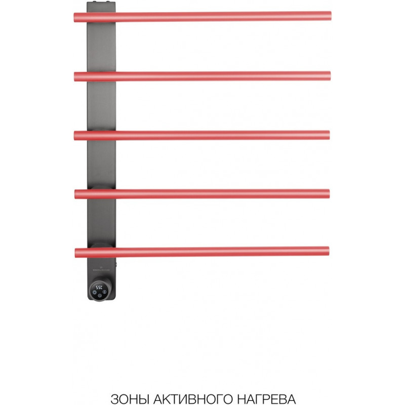 В основе модели — нагревательный кабель из углеродного волокна, гарантирующий безопасность, равномерный нагрев и долговечность. При мощности 75 Вт нагрев происходит всего за 5 минут, достигая комфортных 60°C. Функция отложенного старта и таймер позволяют экономить электроэнергию, устанавливая удобное время включения и выключения. Регулировка температуры от 45°C до 60°C с шагом 5°C обеспечивает точный контроль нагрева. Конструкция из 5 греющих перекладин позволяет сушить большое количество белья, одновременно формируя благоприятный микроклимат и атмосферу комфорта.