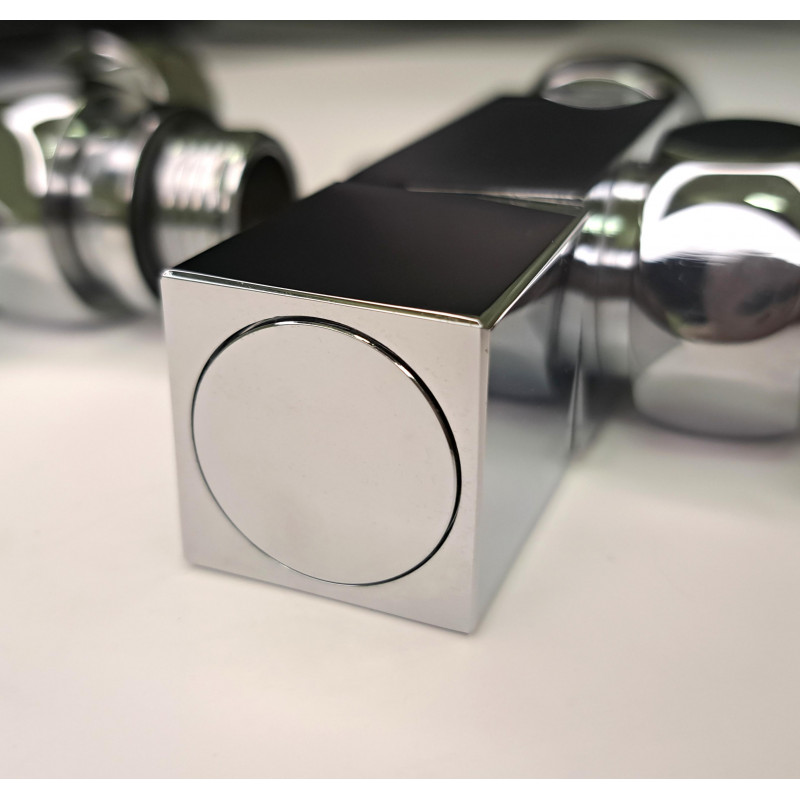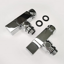 Вентиль запорный угловой квадратный из латуни, материал покрытия хром. Применяется для подключения полотенцесушителя к системе водоснабжения и отопления. Рабочая температура до 100 С, рабочее давление до 10 бар. Вентиль позволяет регулировать подачу воды и при необходимости перекрывать устройство. Размер подключения вентиля 3/4"х1/2".