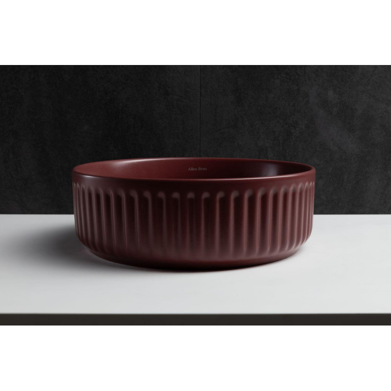Накладная раковина для ванной комнаты Allen Brau Fantasy Line в цвете «бордо» шириной 36 см изготовлена из качественной и прочной керамики, что обеспечивает надежность и устойчивость. Ее круглая форма придает интерьеру ванной комнаты изысканность и гармоничность. Раковина не имеет отверстия для перелива и отсутствует готовое отверстие под смеситель, что придает ей минималистичный и современный вид. Эта накладная раковина подойдет для тех, кто ценит простоту и элегантность. Ее универсальный дизайн легко впишется в различные стили интерьера ванной комнаты, придавая ему изысканность и стиль. Благодаря своей гармоничной форме и отсутствию лишних деталей, эта раковина будет служить не только функциональным, но и стильным элементом вашей ванной комнаты.
