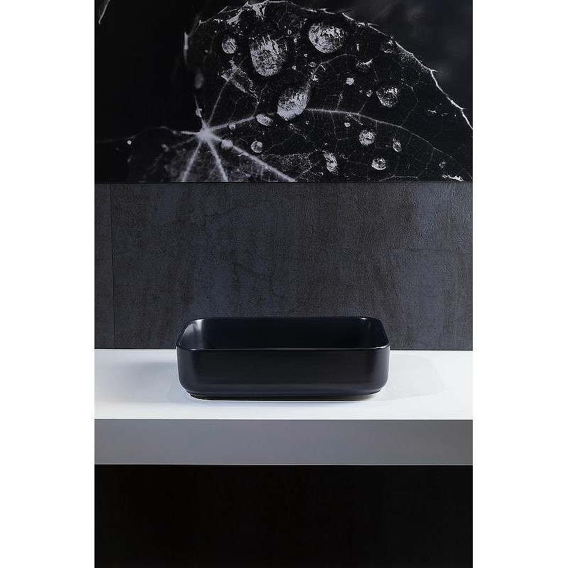 Накладная раковина для ванной комнаты Allen Brau Fantasy Quad в цвете «черный матовый» шириной 50 см изготовлена из высококачественной керамики, что обеспечивает прочность, долговечность и элегантный внешний вид. Ее прямоугольная форма создает современный и стильный облик, добавляя утонченности ванной комнате. Раковина не имеет отверстия для перелива и также не имеет готового отверстия под смеситель, что придает ей минималистичный и сдержанный вид. Эта накладная раковина идеально подходит для тех, кто ценит современный дизайн и функциональность. Ее простота и элегантность делают ее универсальным выбором, который легко впишется в любой интерьер ванной комнаты, придавая ему изысканность и стиль.