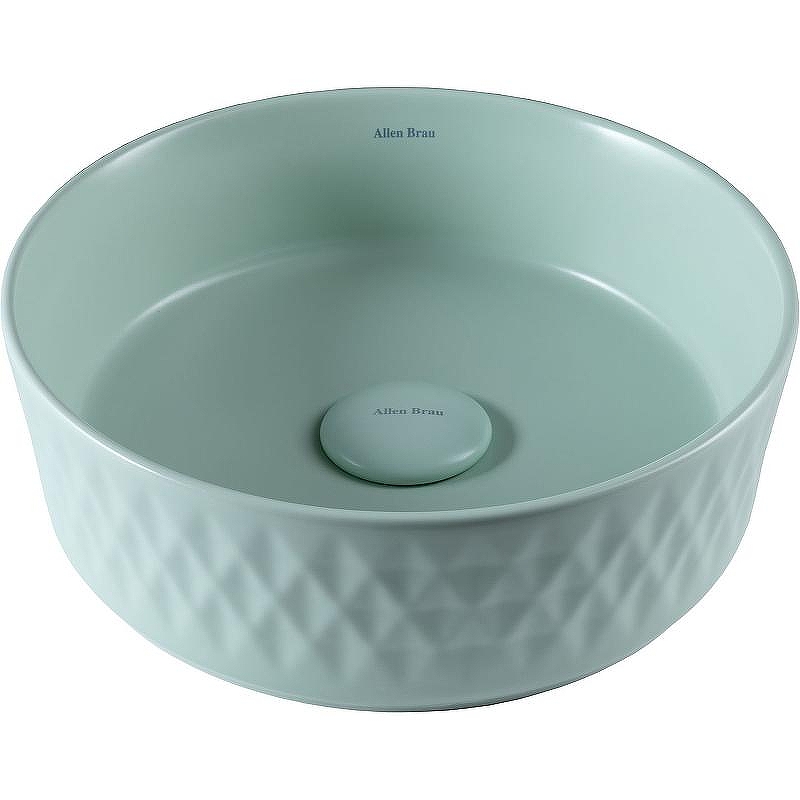 Накладная раковина для ванной комнаты Allen Brau Fantasy Romb в цвете «мятный» шириной 36 см изготовлена из качественной и прочной керамики, что обеспечивает надежность и устойчивость. Ее круглая форма придает интерьеру ванной комнаты изысканность и гармоничность. Раковина не имеет отверстия для перелива и отсутствует готовое отверстие под смеситель, что придает ей минималистичный и современный вид. Эта накладная раковина подойдет для тех, кто ценит простоту и элегантность. Ее универсальный дизайн легко впишется в различные стили интерьера ванной комнаты, придавая ему изысканность и стиль. Благодаря своей гармоничной форме и отсутствию лишних деталей, эта раковина будет служить не только функциональным, но и стильным элементом вашей ванной комнаты.