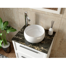 Раковина Allen Brau Liberty чем-то напоминает плавающую в озере кувшинку великолепного белоснежного цвета высотой 130 мм. Она сделана из высококачественной керамики с филигранными тонкими бортиками, особенно изящными на фоне объемной бочкообразой чаши круглой формы. Под накладную раковину диаметром 36 см легко подобрать столешницу, так как она очень компактная.