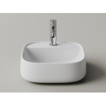 Раковина накладного и подвесного монтажа. Отверстия на задней части раковины под крепеж позволяют подвешивать раковину на стену. Крепления для установки в комплекте. Раковина глазурированная с 4 х сторон. С отверстием под смеситель . Защитный бортик от выплеска воды