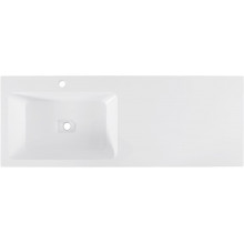 Раковина имеет левостороннюю ориентацию, что позволяет удобно расположить её в ванной комнате любой планировки. Удобство использования подчеркивается готовым отверстием под смеситель, что упрощает процесс установки.