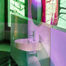 Эта раковина является частью дизайнерской коллекции Sonar, разработанной Патрисией Уркиолой. Модель отличается универсальностью: ее можно установить как накладную на столешницу или мебель, так и подвесную непосредственно на стену.