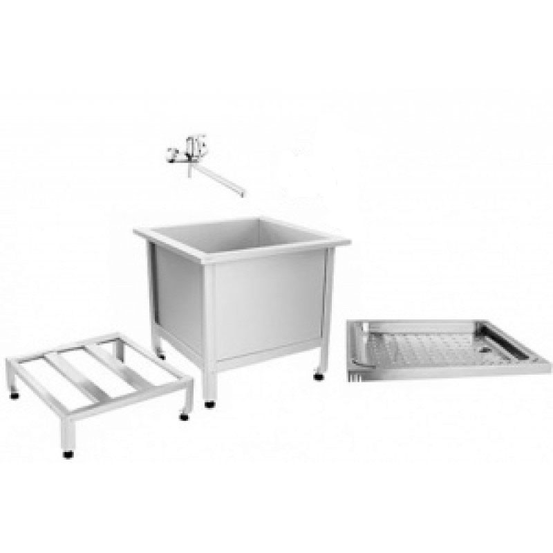 Слив технический из нержавеющей стали 800х800х450 мм, С ПОДДОНОМ, СМЕСИТЕЛЬ, ТЕХ. ЛЕЙКА (ЭКОНОМ)