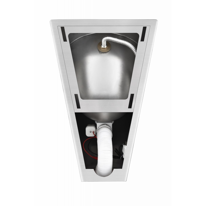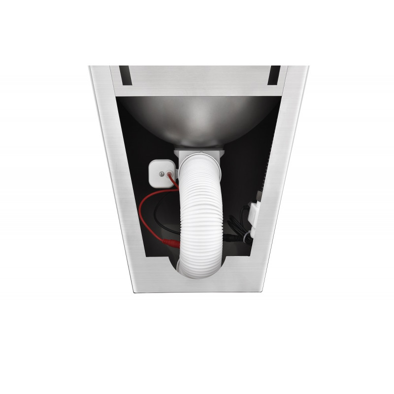 Корпус писсуара выполнен из нержавеющей стали SUS304 толщиной 1,5 мм, а сенсор скрыт под чашей. Такой конструктив повышает защищенность изделия от внешних воздействий - в частности, от вандализма. Другое преимущество скрытого сенсора - защита от ложных срабатываний.