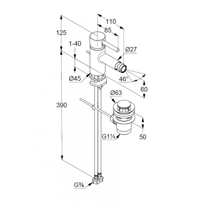 Смеситель для биде Nicolazzi M.Croce 2237CR27 с донным клапаном
