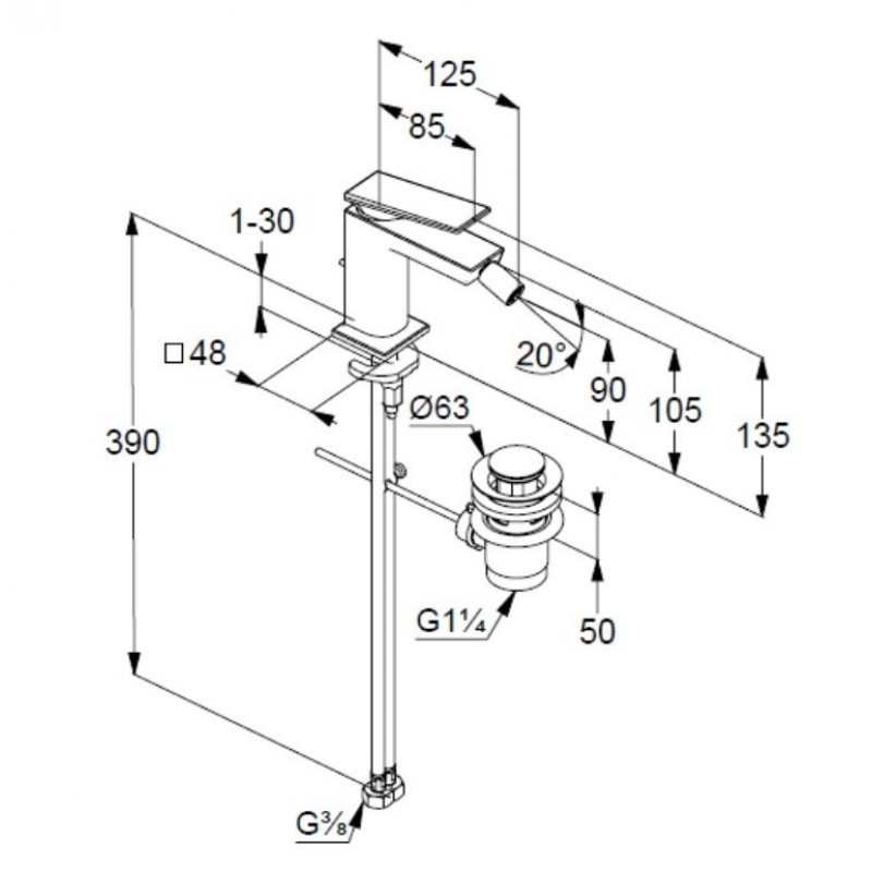 Смеситель для биде Nicolazzi M.Croce 2237CR27 с донным клапаном