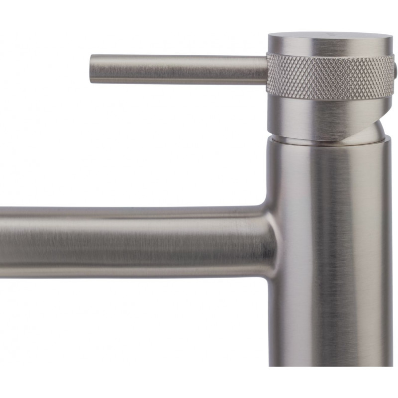 Смеситель для умывальника Allen Brau Priority 5.31002-BN — элегантная однорычажная модель для раковины с высоким литым изливом из коллекции Priority, сочетающей в себе итальянский изящный стиль с традиционной немецкой лаконичностью. Смеситель изготовлен из высококачественной латуни, цвет - никель брашированный. Керамический картридж Kerox обеспечивает плавное управление и точную регулировку напора и температуры воды. Встроенный надежный аэратор Neoperl работает бесшумно, создает мягкий ровный поток воды и значительно экономит расход ресурса. Высокий смеситель подойдет для монтажа на столешницу, к раковине-чаше.