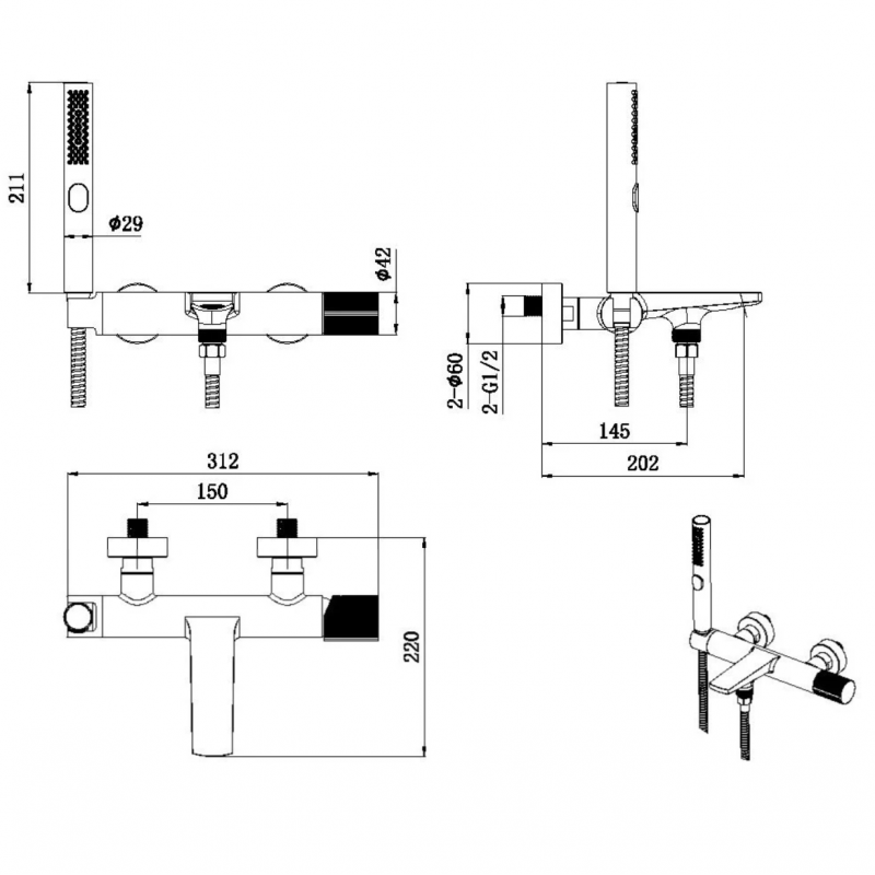 - длина душевого шланга, мм: 1500