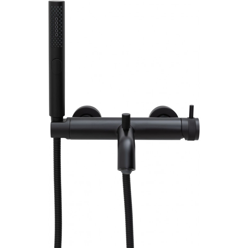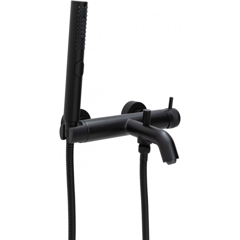 Смеситель для ванны Allen Brau Priority 5.31D10-31 — стильная и удобная модель черного цвета с матовой поверхностью с ручным трехрежимным душем из ABS-пластика, изливом, держателем душевой лейки и шлангом 1,5 м SUS304. Смеситель изготовлен из латуни.