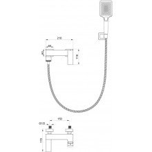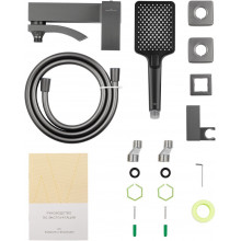 Комплектация: смеситель, душевой шланг, держатель для душа, душевая лейка, эксцентрики, монтажный комплект