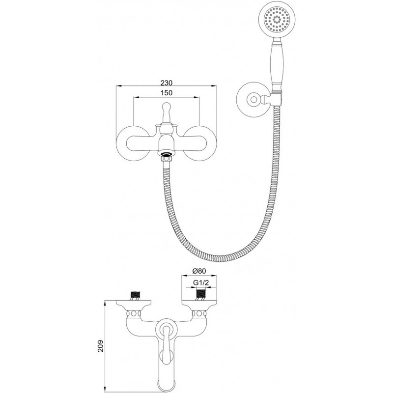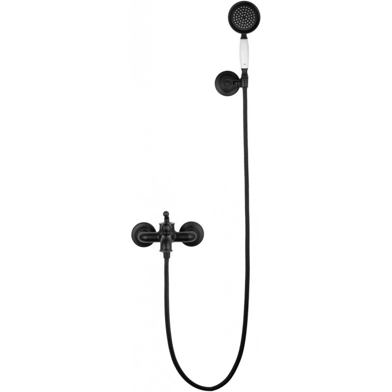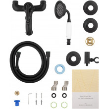 Комплектация: смеситель, душевой шланг, держатель для душа, душевая лейка, эксцентрики, монтажный комплект