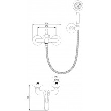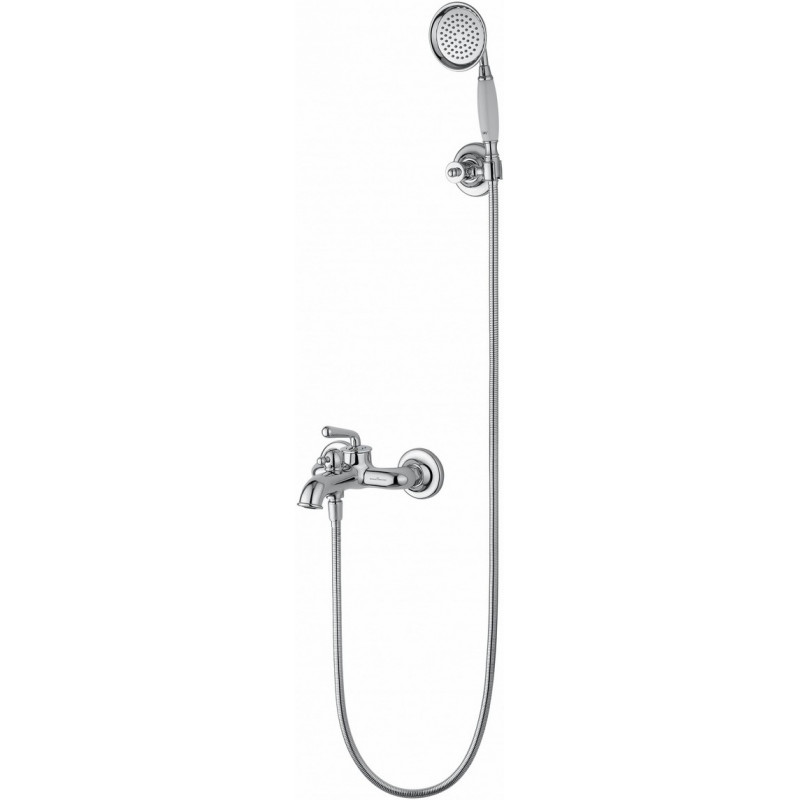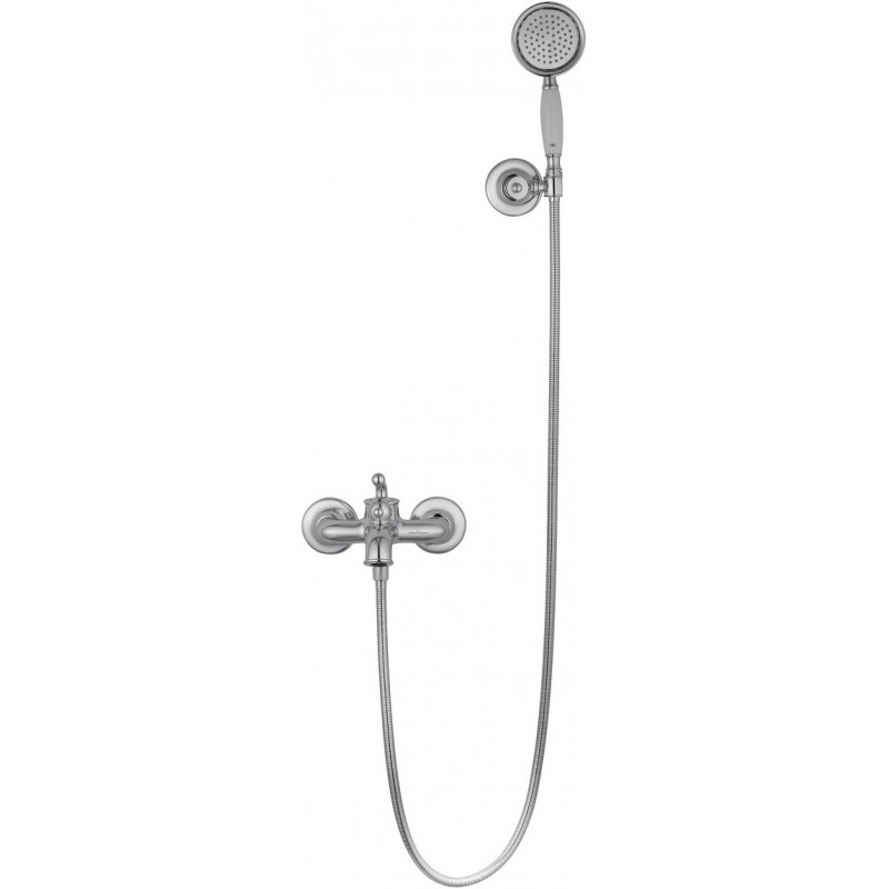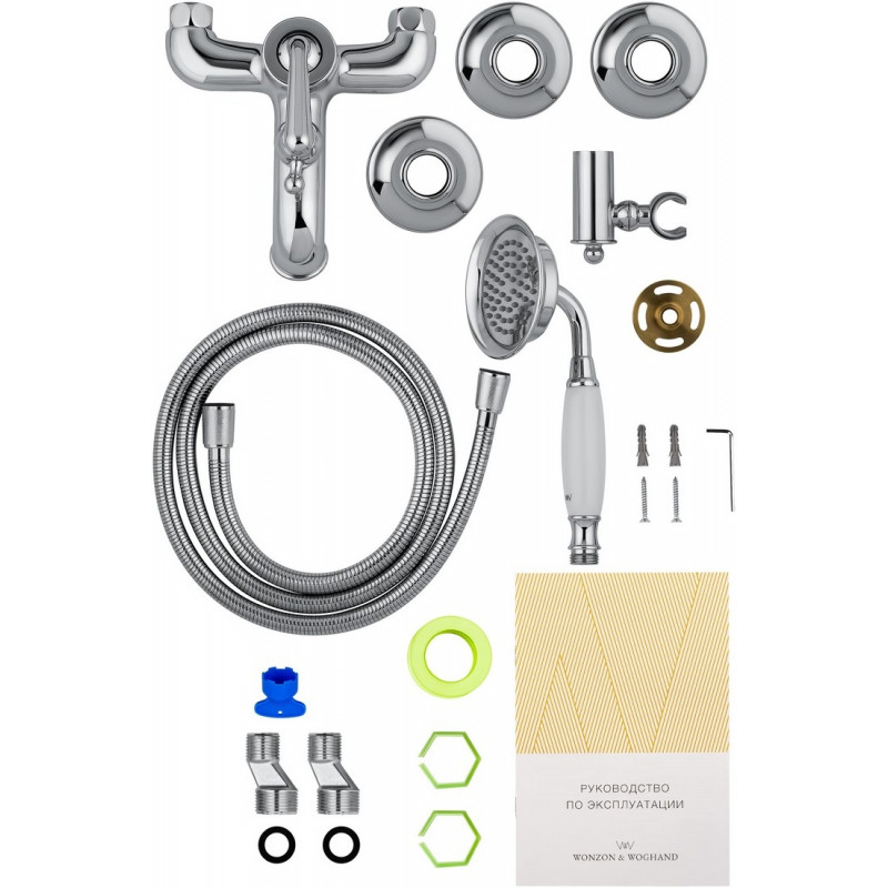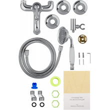 Комплектация: смеситель, душевой шланг, держатель для душа, душевая лейка, эксцентрики, монтажный комплект