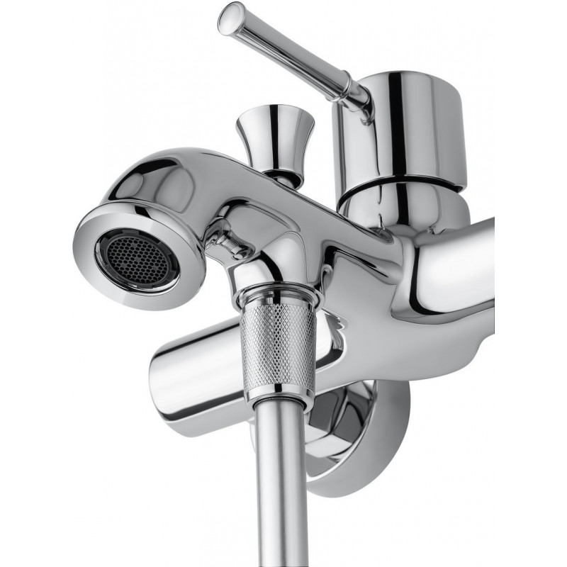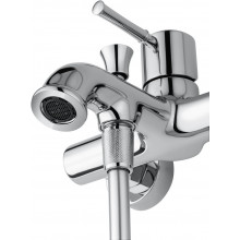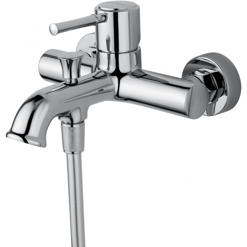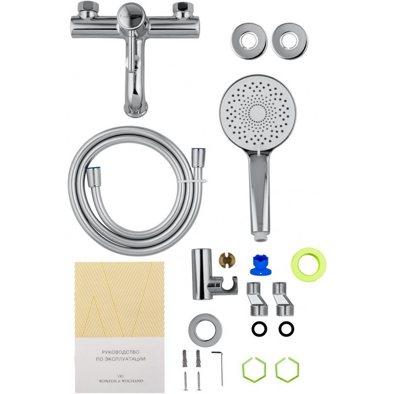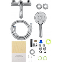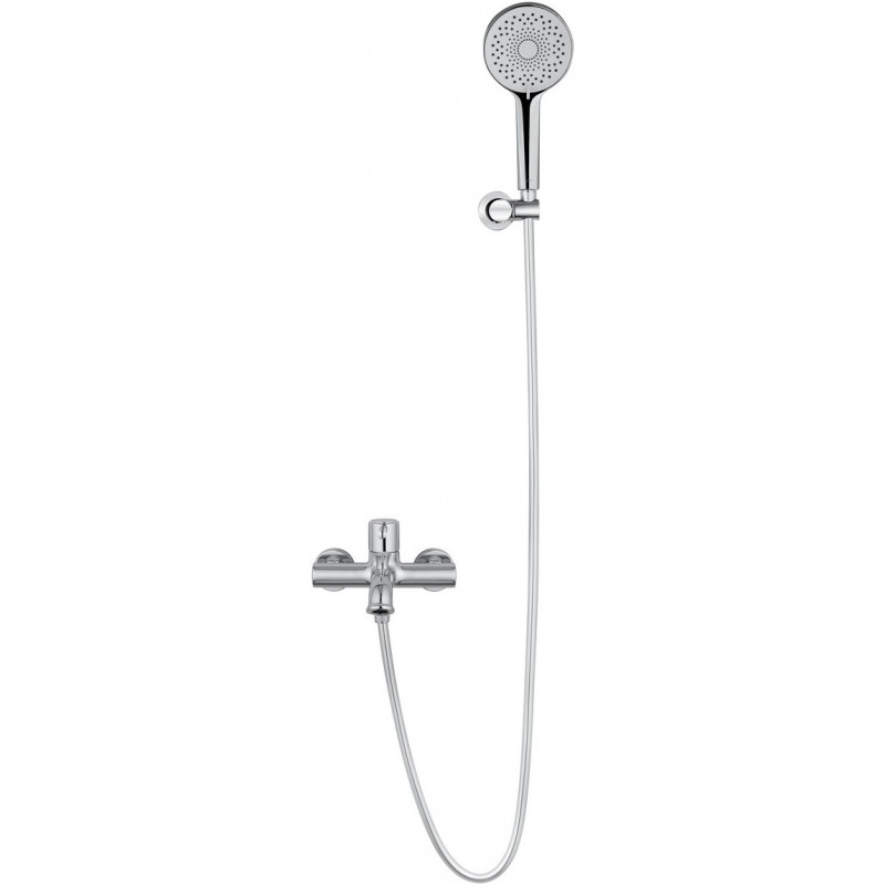 Комплектация: смеситель, душевой шланг, держатель для душа, душевая лейка, эксцентрики, монтажный комплект