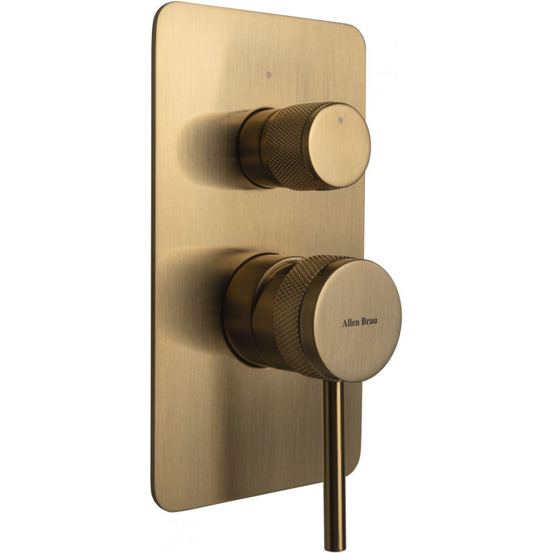 Смеситель встраиваемый Allen Brau Х2 Priority 5.31011-GB – встроенный смеситель в цвете брашированное золото на два выхода воды, с внутренним монтажным коробом Easy Box (дополнительно приобретаются верхний душ и прочее оборудование). Изготовлен из латуни, устойчивой к температурным перепадам, обладает износостойкостью. Накладка выполнена из нержавеющей стали.