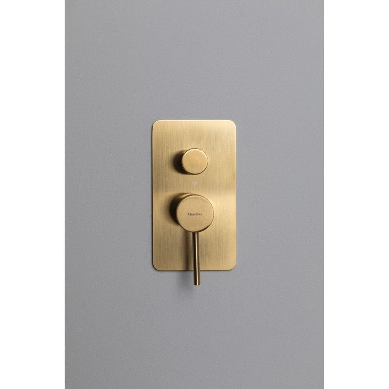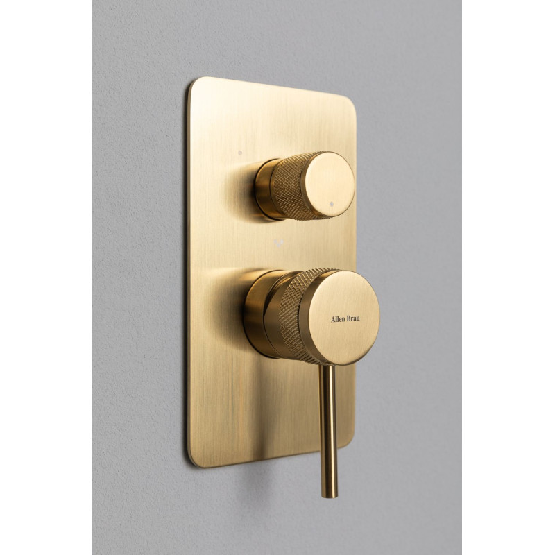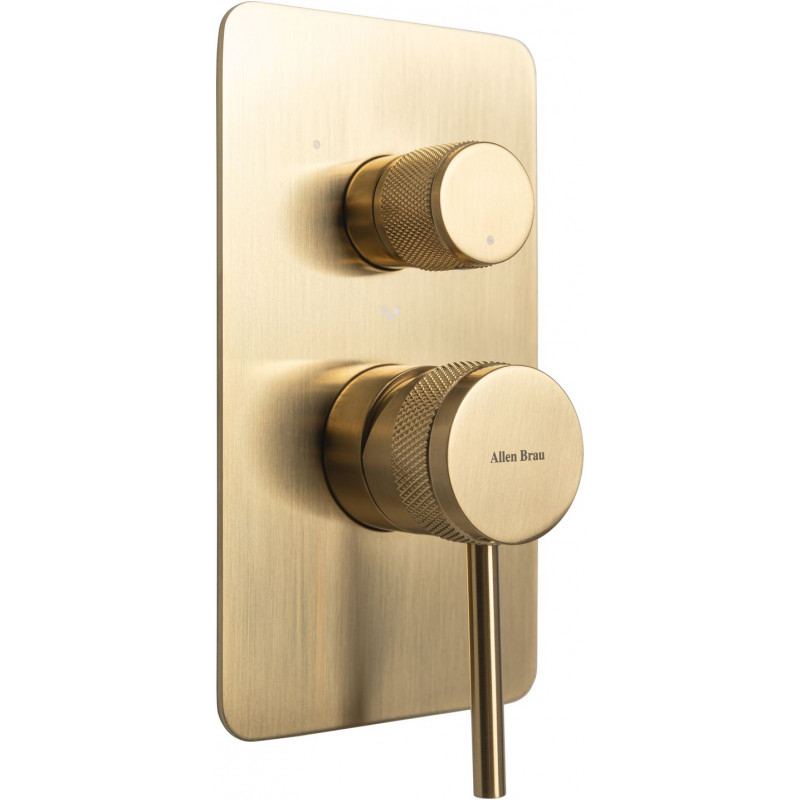 Смеситель встраиваемый Allen Brau Priority 5.31A11-GB — встраиваемый смеситель в цвете брашированное золото, на три выхода воды, с внутренним монтажным коробом Easy Box (отдельно приобретаются верхний душ и другое оборудование). Выполнен из высококачественной латуни, обладающей долговечностью и прочностью. Поворотный переключатель режимов. Накладка из нержавеющей стали. Картридж KEROX.