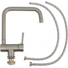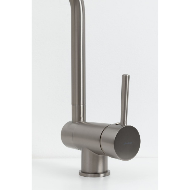 Смеситель для кухонной мойки Allen Brau Fenster 5.60004-BN — функциональная однорычажная модель для кухни с удобным поворотным изливом (угол поворота 360°), подойдет для установки у окна, окрывающегося внутрь кухни. Смеситель изготовлен из высококачественной стали с брашированной поверхностью. Керамический картридж Kerox обеспечивает плавное управление и точную регулировку напора и температуры воды.