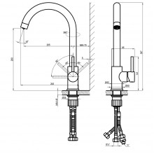 Гибкая подводка: ½" 40 см (основная) + ½" 25 см (питьевая).