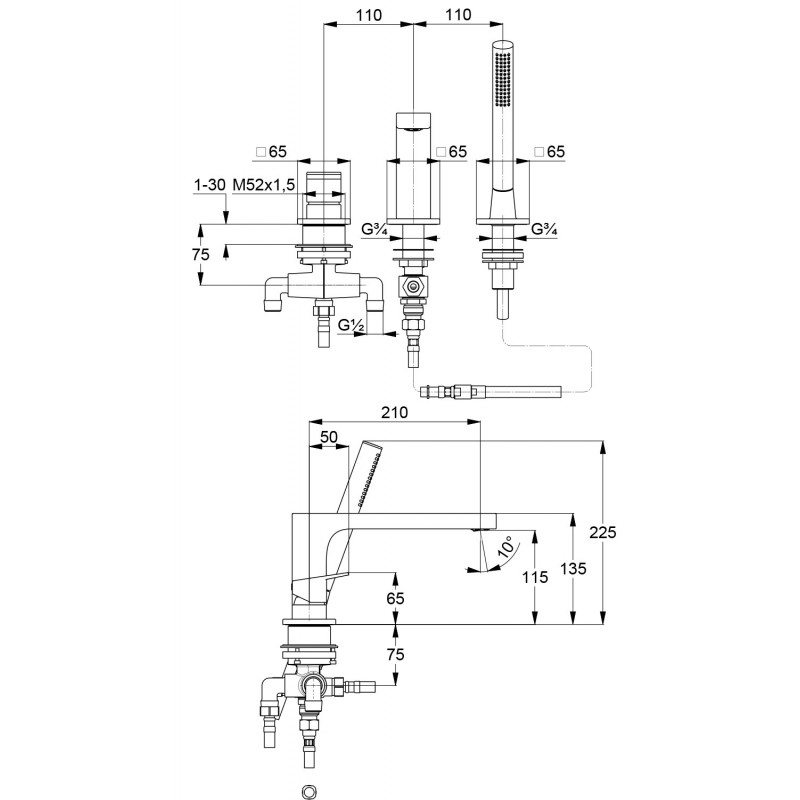 Душевой шланг: 1500 мм.