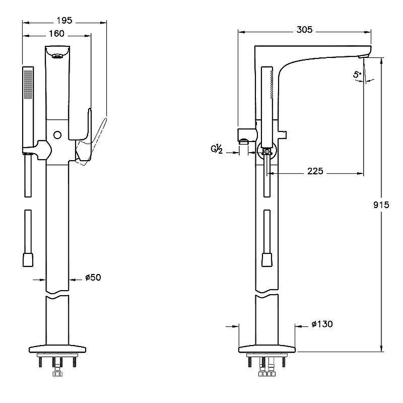Смеситель для ванны и душа Vitra Root Round с душевым гарнитуром