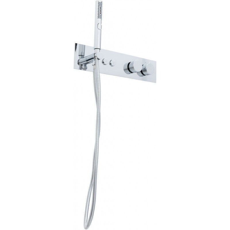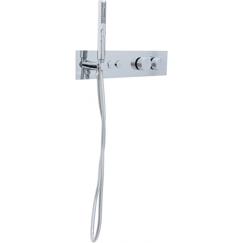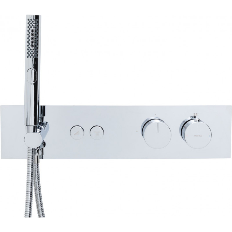 Смеситель встраиваемый Allen Brau Liberty 5.33010-00 термостатический — стильная модель скрытого монтажа с хромированной поверхностью, с термостатическим картриджем, для ванны и душа, с трехрежимной ручной лейкой и с внутренним монтажным коробом Easy Box. Переключатель режимов – PUSH KEY. Благодаря латуни высокого качества, изделие устойчиво к коррозии, химическим и механическим повреждениям. Накладка из нержавеющей стали. Необходимо выбрать дополнительно 2-ой потребитель воды, например верхний душ или излив.