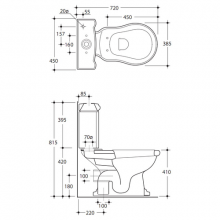 Retro 1012 моноблок Состоит из: - Retro 1012, унитаз моноблок, слив в пол, цвет белый - Retro 1012/1013 Бачок для унитаза моноблок (без механизма слива) подвод снизу, цвет белый - Retro 7509cr Механизм двойного слива с нижним подводом воды, цвет кнопки хром - Retro 7603сr Крепление вертикальное для напольных унитазов/биде, цвет хром
