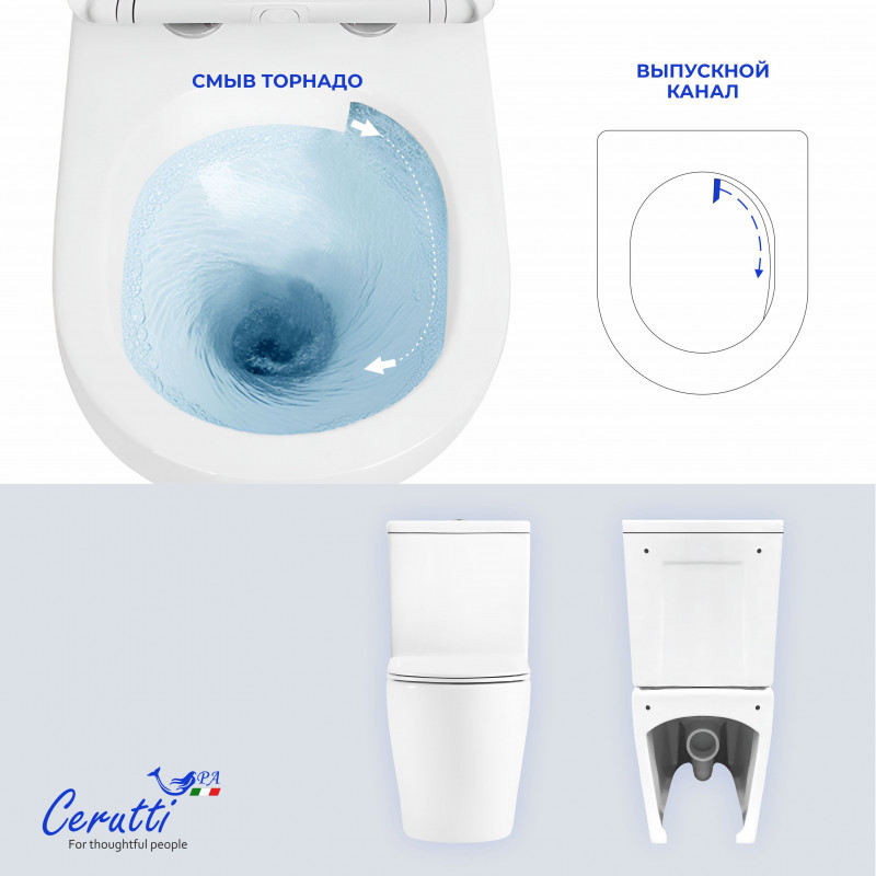 Унитаз-компакт Cerutti SPA Manlio Tornado CT10618 белый глянцевый.