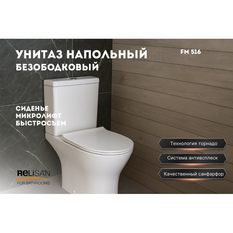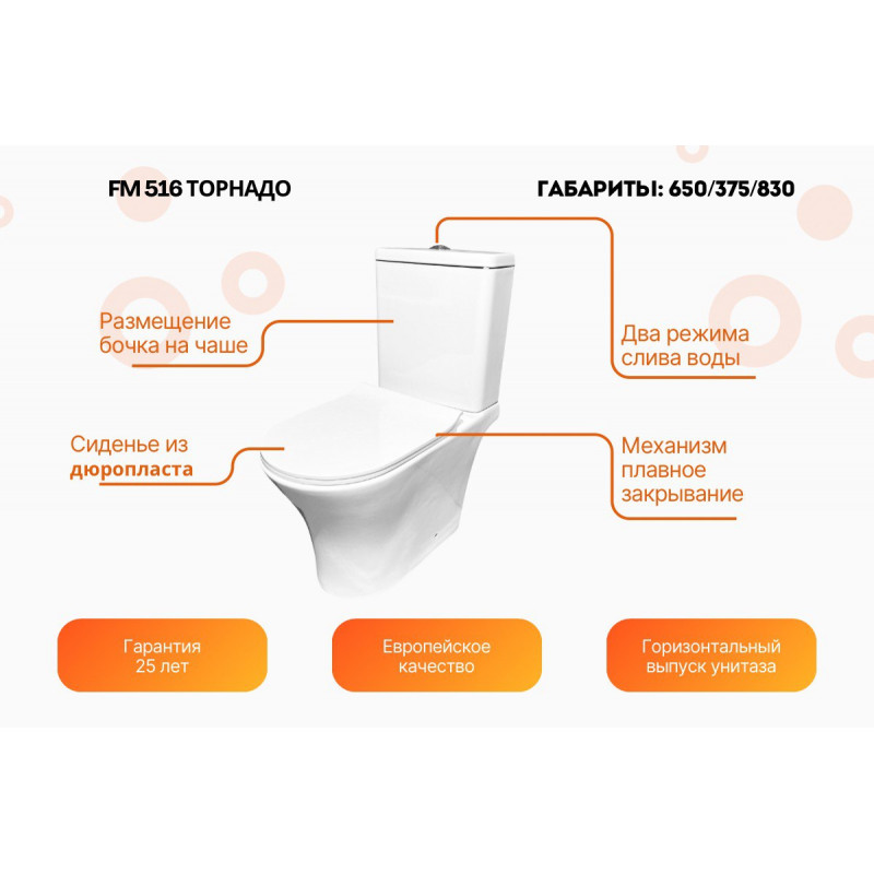 Смыв Торнадо — мощный круговой поток без брызг, эффективное очищение всей чаши;