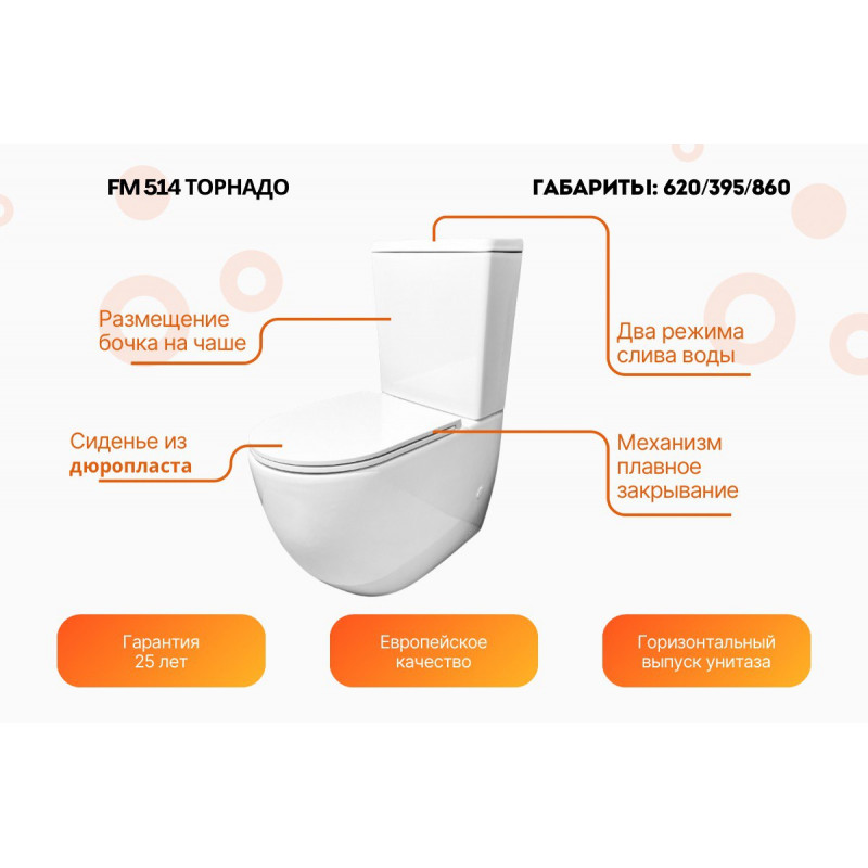 Смыв Торнадо — мощный круговой поток без брызг, эффективное очищение всей чаши;