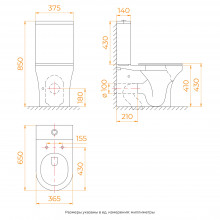 Универсальный выпуск у унитаза короткий, поэтому при монтаже можно использовать гофру и патрубки любой длины. Унитаз от RGW Стильные Душевые можно устанавливать независимо от расположения канализационной трубы, так как он подходит под любой выход канализации (горизонтальный, вертикальный и косой).