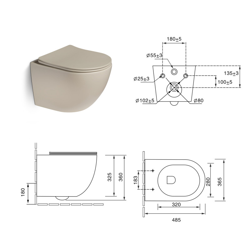 Унитаз подвесной, безободковый,система смыва Tornado (бежевый матовый) SL-5005T-BG