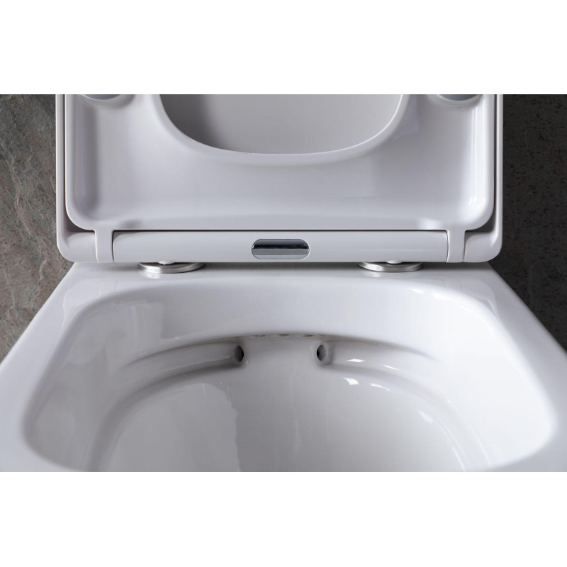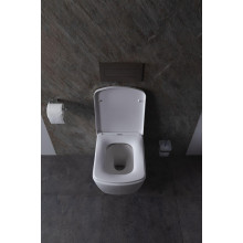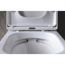 Сам унитаз безободковый, что прибавляет ему гигиеничности: загрязнения не скапливаются в труднодоступных местах, а сама чаша быстро очищается подручными средствами.