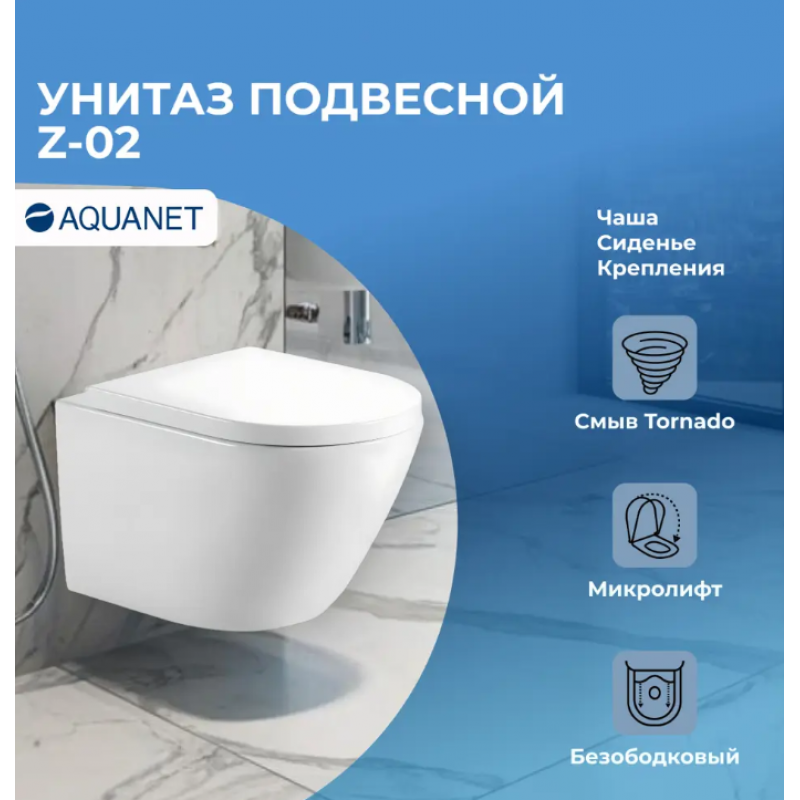 Современный подвесной унитаз Aquanet с системой Tornado Flush